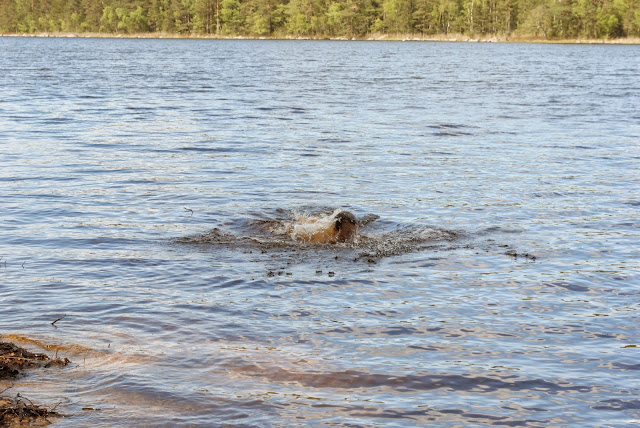 Det var 15-16 grader i luften och blåst, så hur skönt kan det varit...Nu ska vi göra oss redo för valpkurs och i eftermiddag är det kalas. Idag är det Max tur att kolla hur Oden sköter sig på brukshundsklubben ;-)